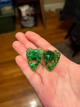 Set of 2 green glittery ouija board planchette fridge magnets. Handmade with epoxy resin.