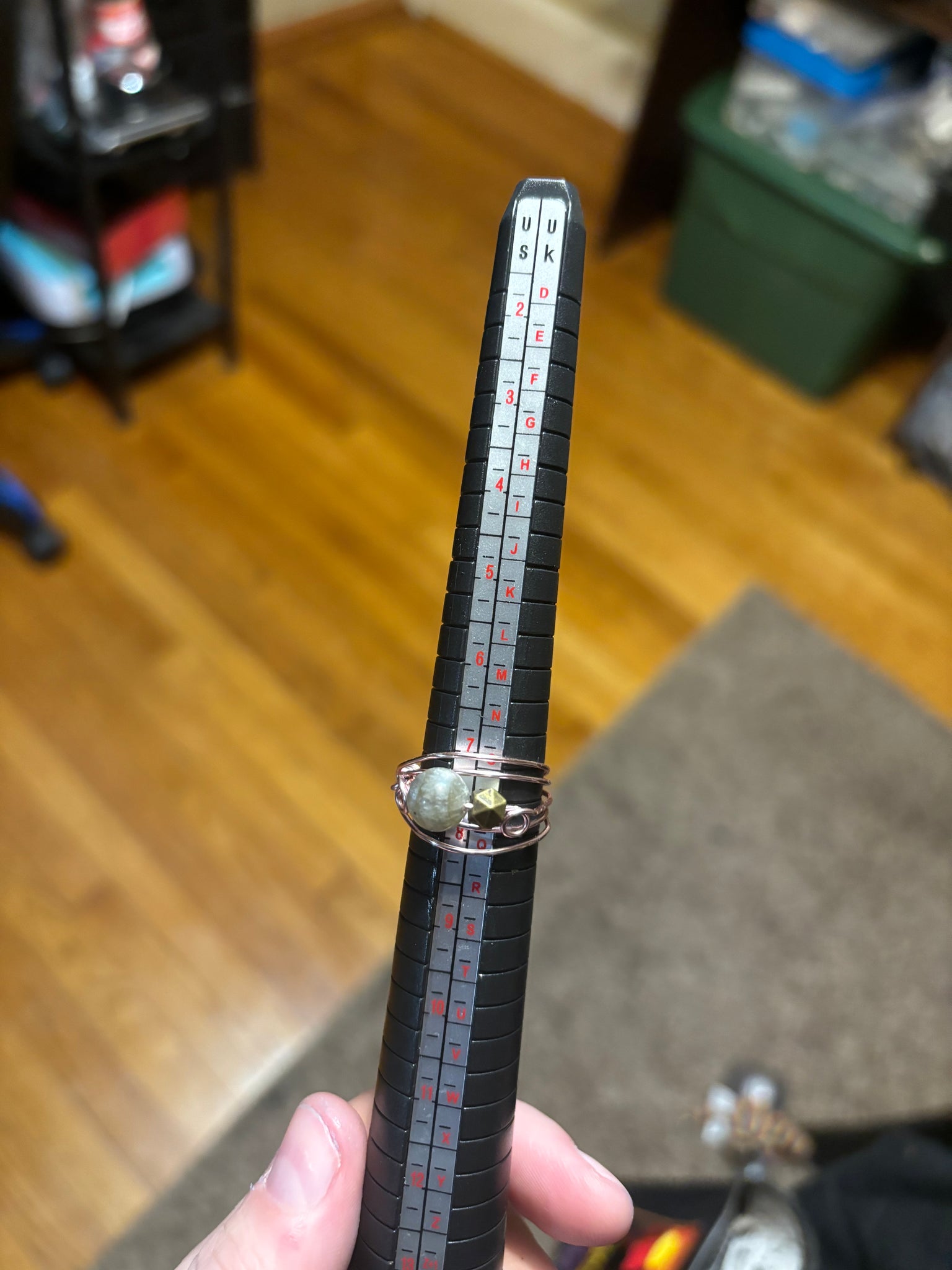 Unique labradorite wire wrapped crystal ring w/ another lil bead. Handmade! Cute pink wire was used