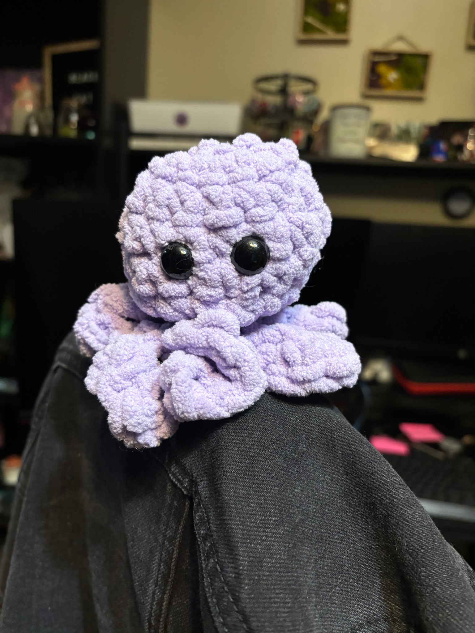 Crocheted “Lavender” color octopus plushie. Handmade! Each may vary slightly! (not recommended for children under 3, the eyes are secured, but can still fall out making them a choking hazard)