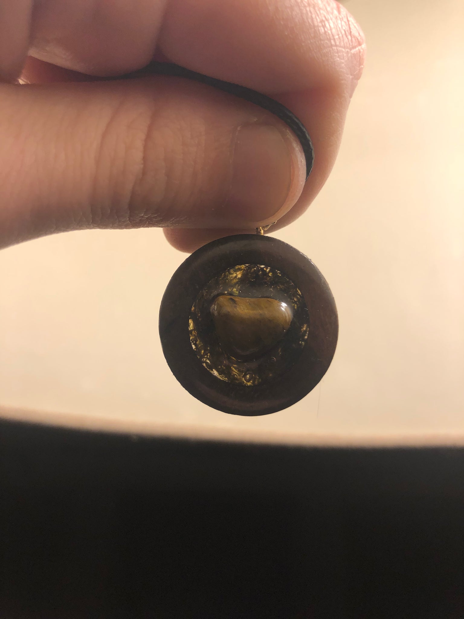 Tigers Eye - Brings courage & protection to the wearer. !DISCOUNTED! We attended a flea market & it got some water damage from rain. Still a great piece, but the stain on wood came off & there’s really no way to fix it since it’s covered in resin.